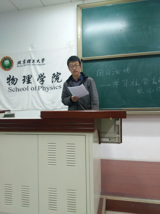 2014年11月15日下午,为了积极响应pg游戏电子模拟器校团委关于“践行社会主义核心价值观”的号召,pg游戏电子模拟器2014级全体新生在物理实验中心229联合举办了以“践行社会主义核心价值观”为主题的团日活动。本次活动由各班级团支部书记组织委员和宣传委员主持。