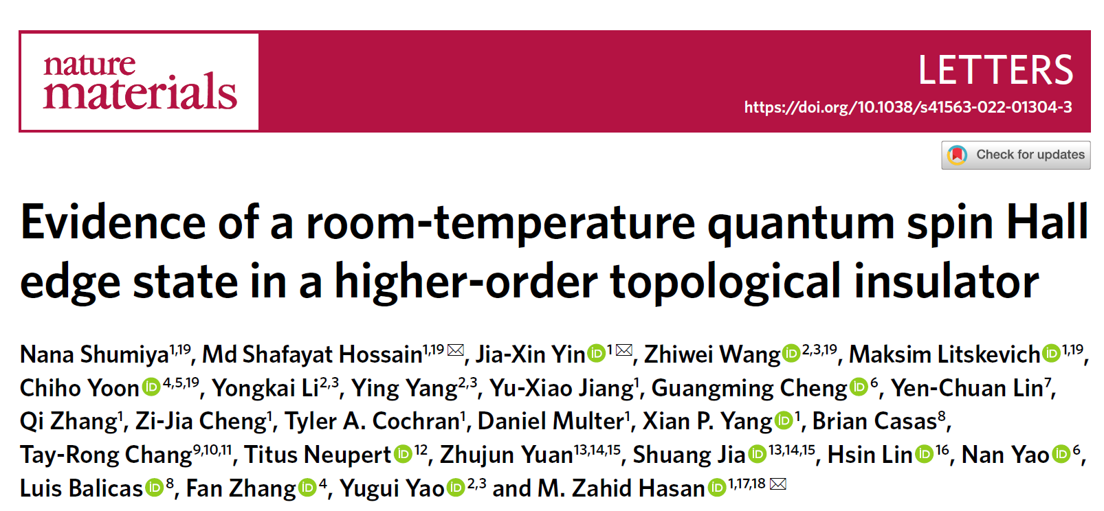 pg游戏电子模拟器团队与普林斯顿大学合作发现室温量子自旋霍尔边缘态存在的证据