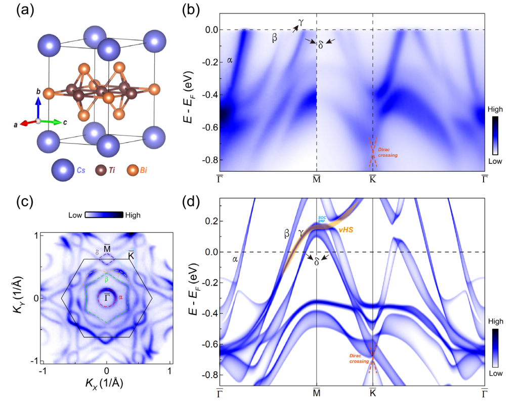 图1. CsTi3Bi5的晶体结构和电子能带结构