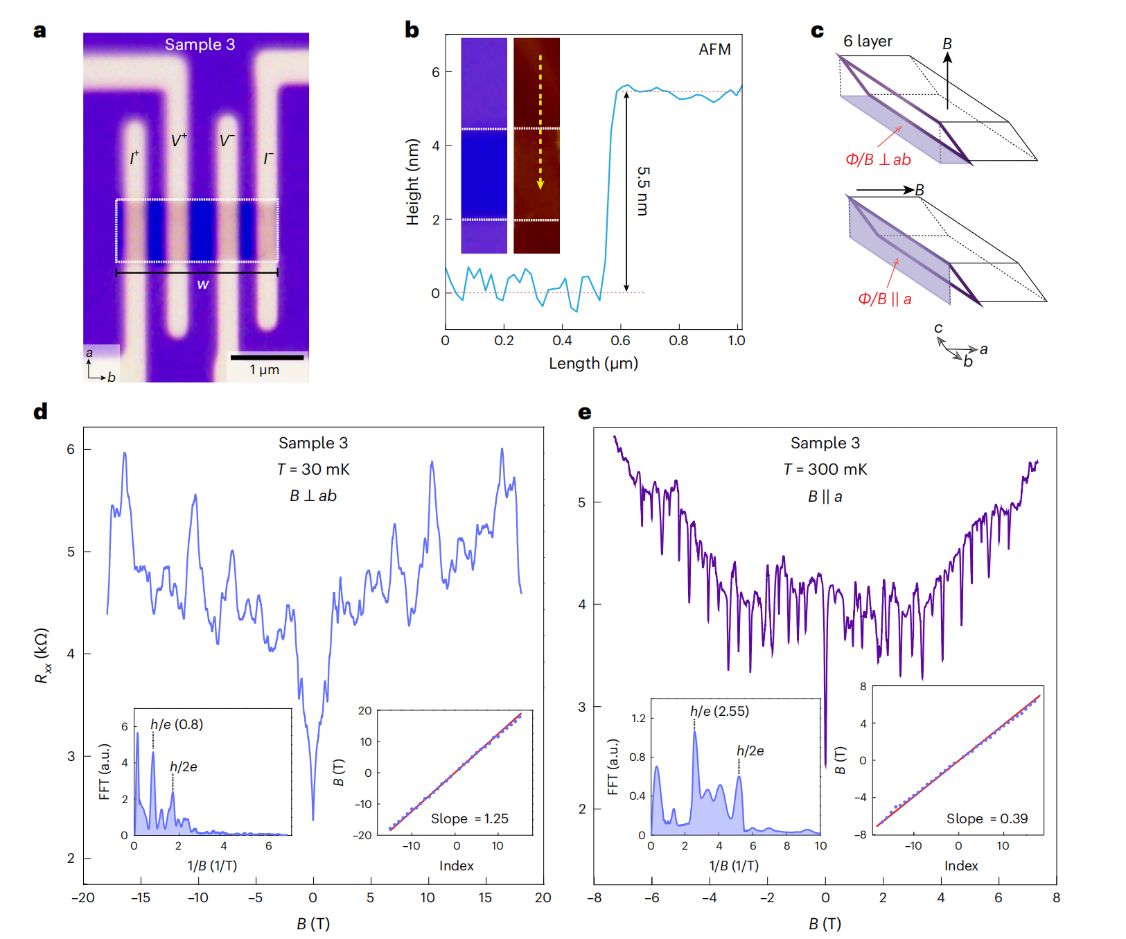 图2. 在6层α-Bi4Br4中观测到的Aharonov–Bohm振荡。