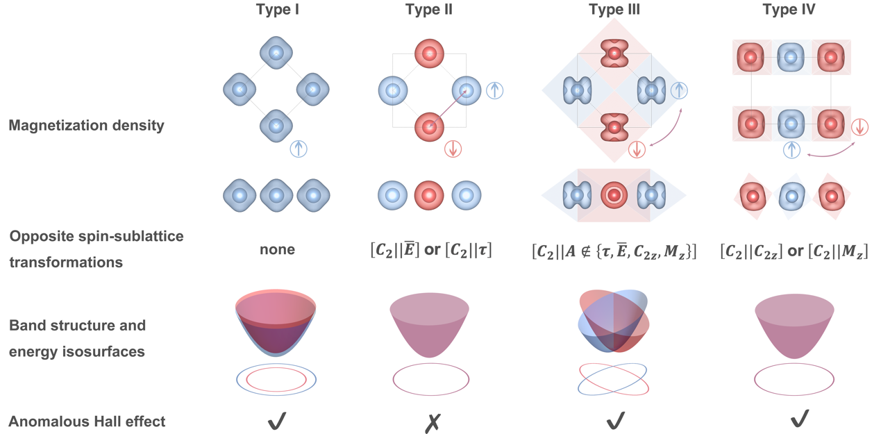 近日,pg游戏电子模拟器冯万祥教授、姚裕贵教授团队在磁性材料及其反常输运性质的研究中取得重要进展。他们在二维共线磁体中发现一种新的磁相:在非相对论极限下能带保持自旋简并,而引入自旋轨道耦合后可出现反常霍尔效应,且可由自旋中性流驱动,并伴随全动量空间的 persistent spin texture。这是一类区别于铁磁、反铁磁和交错磁的第四类共线磁相。该工作以“Anomalous Hall Effect in Type IV 2D Collinear Magnets”为题发表于国际物理学顶级期刊《Physical Review Letters》。pg游戏电子模拟器为该工作的唯一完成单位,冯万祥教授和姚裕贵教授为论文的共同通讯作者,博士生白羚为论文的第一作者,张闰午特别研究员为论文的共同作者。该工作得到科技部重点研发计划和国家自然科学基金等项目的支持。