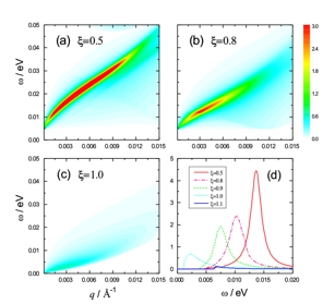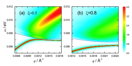 图3:不同外场强度下等离激元的色散关系和相应能量损失函数