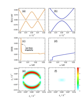 图2:反带与正带体系的能带结构、态密度和波函数交叠图