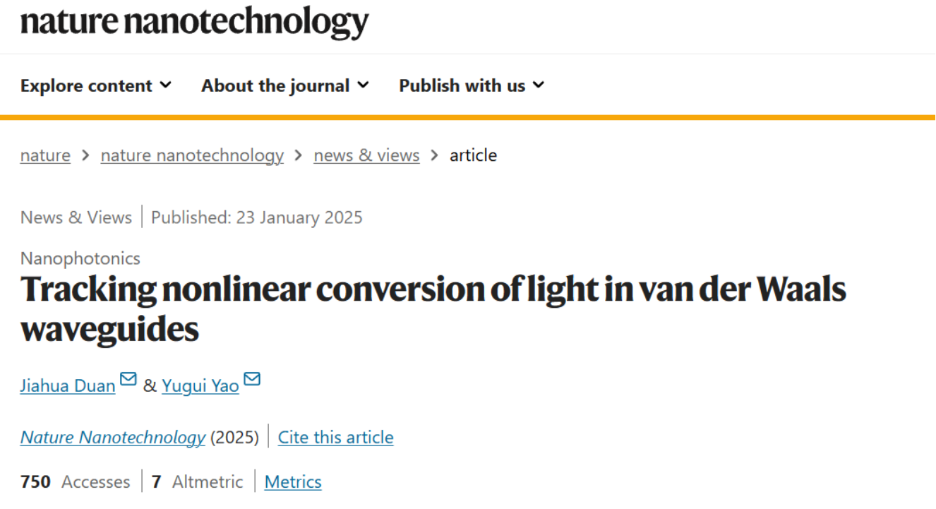 近日,Nature子刊《Nature Nanotechnology》邀请pg游戏电子模拟器姚裕贵教授、段嘉华教授撰写发表评述性论文,文章题为“Tracking nonlinear conversion of light in van der Waals waveguides”,论文评述了哥伦比亚大学Milan Delor教授团队在Nature Nanotechnology上发表的论文[DOI: https://doi.org/10.1038/s41565-024-01849-1],介绍了远场频闪散射显微技术在非线性光学领域中的重要应用。