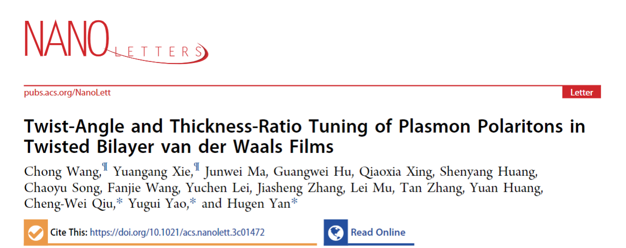 日前,pg游戏电子模拟器姚裕贵教授、王冲特别研究员,以及复旦大学物理系的晏湖根教授和新加坡国立大学的仇成伟教授合作,共同揭示了操控双层薄膜中的极化激元的光学拓扑性的新机制。相关研究题目为《扭转角度和膜厚比调控双层范德瓦尔兹薄膜中的极化激元》(Twist-Angle and Thickness-Ratio Tuning of Plasmon Polaritons in Twisted Bilayer van der Waals Films),成果被发表在《纳米快报》(Nano Letters)上。