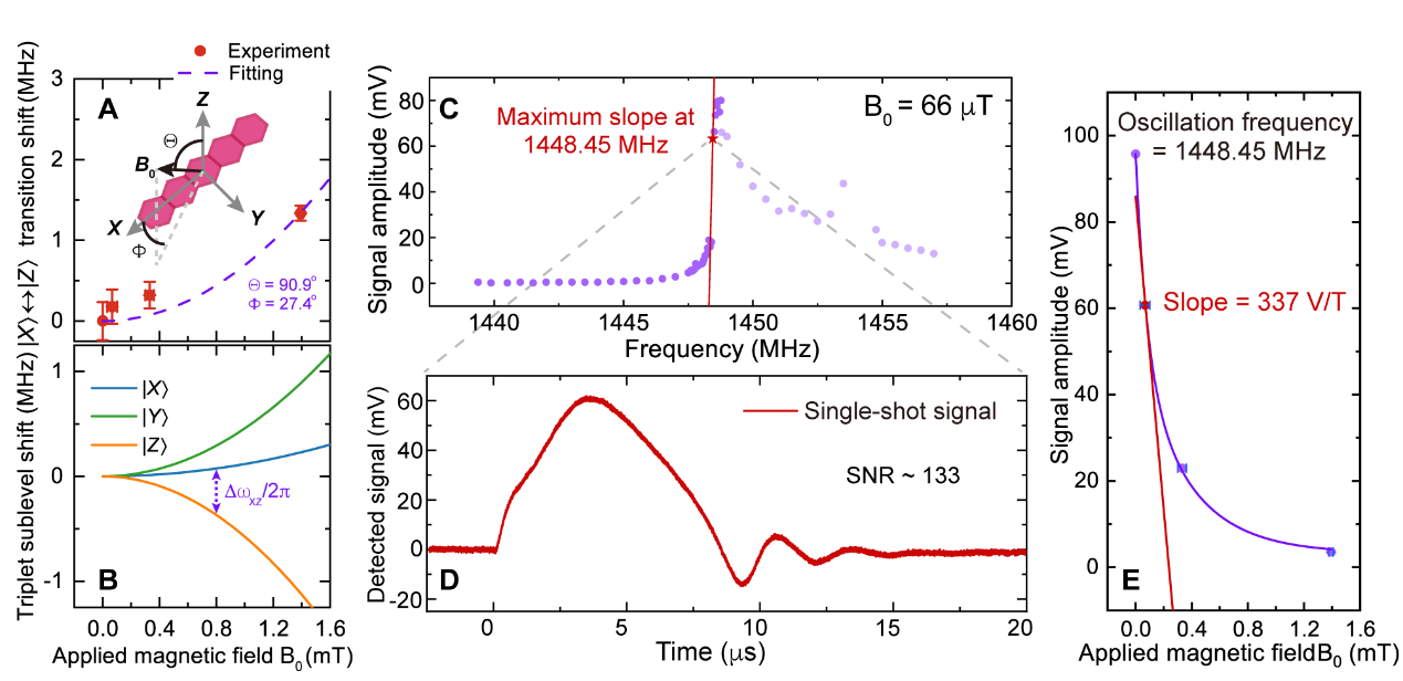 图2. 并五苯自旋系综磁力仪性能测试。