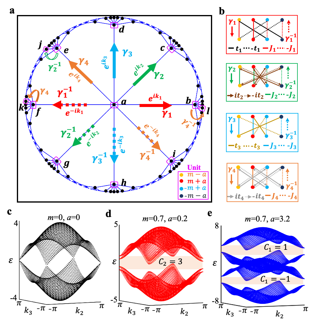 图1. 具有非平庸二阶陈数的双曲晶格模型。