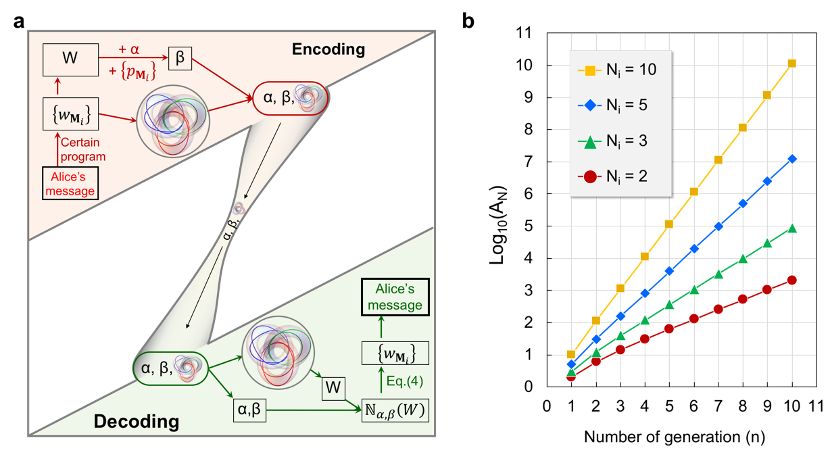 。研究人员使用这些拓扑不变量作为信息的载体,设计了具有高容量的拓扑编码方案,如图2a所示。首先,信息的发送者Alice把她要发送的信息转换为一组绕数