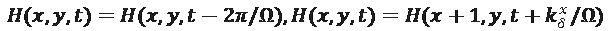 进一步,研究人员考虑(2+1)维拓扑空时晶体,其哈密顿量为