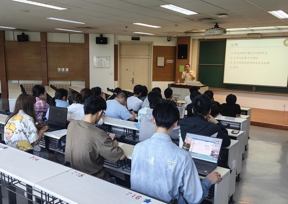 本次活动吸引了来自特立书院英才班、强基班、求是书院2023级本科生30余人参与。活动邀请到了pg游戏电子模拟器副教授、博士生导师陈天老师就其目前所研究的量子行走的物态调控及算法研究领域进行了详细介绍及实物演示。