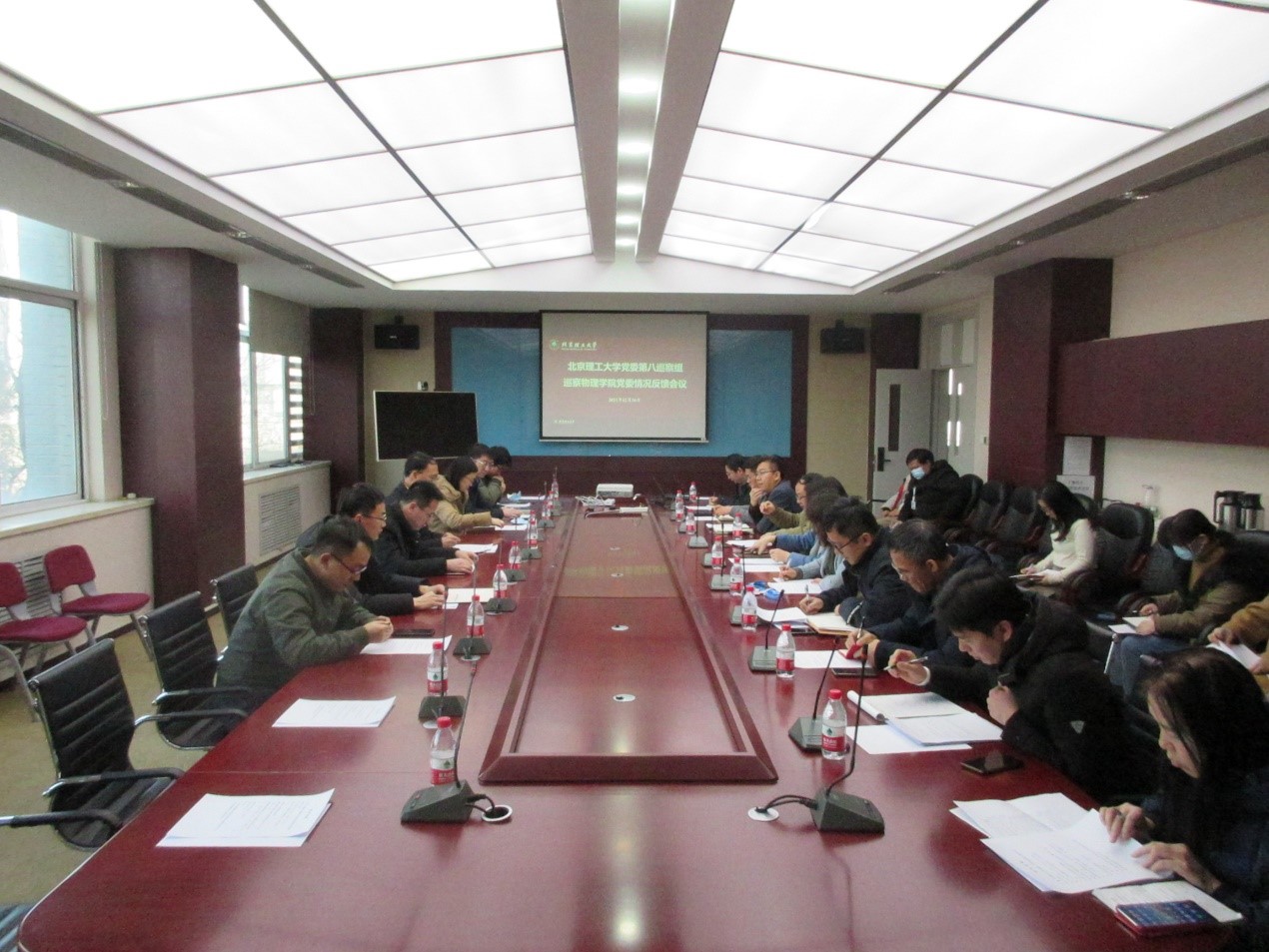 学校党委第四轮巡察第八巡察组全体成员、pg游戏电子模拟器党政领导班子成员、部分师生代表参加会议。