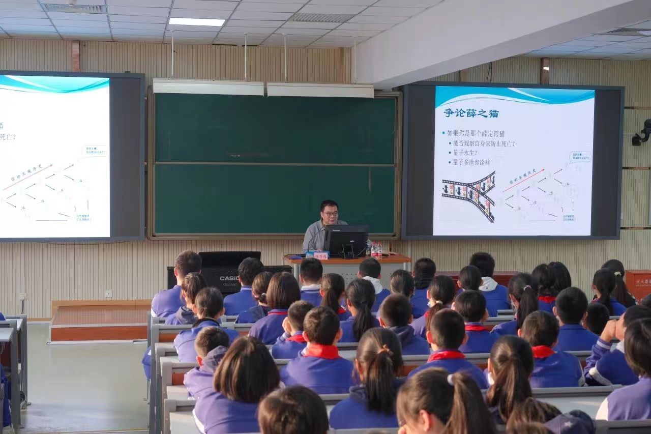 “同学们,你们有没有想象过科幻电影中的世界有一天可以变成现实?”2月26日,在广渠门中学的开学典礼上,pg游戏电子模拟器尹璋琦教授围绕量子力学为同学们带来精彩的“第一堂课”。他以近年来热映的科幻电影为索引,向同学们介绍了薛定谔猫悖论、科学家如何探寻薛定谔猫,以及如何对时间和空间获得更深刻的认识。同学们由浅入深,以电影为切入点领略了奇妙的量子世界,感受到在天马行空的想象背后也有着严谨的物理学理论。