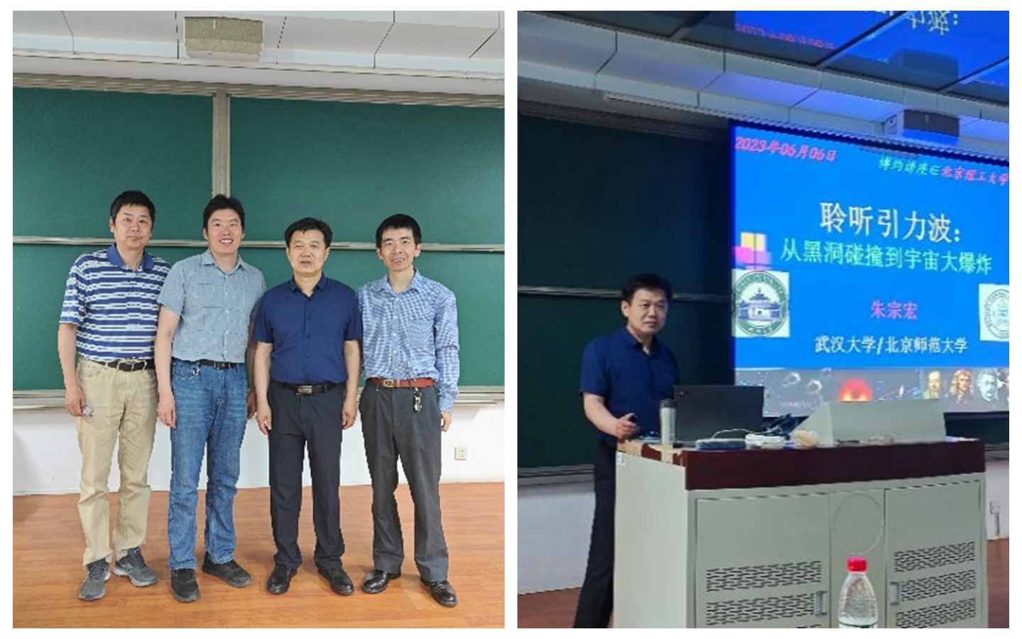 来源: 作者: 发布时间:2023-06-092023年6月6日下午13:30,武汉大学天文系/北京师范大学天文系朱宗宏教授做客pg游戏电子模拟器“博约科技讲座”,在理学楼B座2-206教室为师生带来了一场题为《聆听引力波——从黑洞碰撞到宇宙大爆炸》的讲座。pg游戏电子模拟器院长助理李军刚、缪劲松等教师以及近百名本科生参加。本次报告由pg游戏电子模拟器韦浩主持。