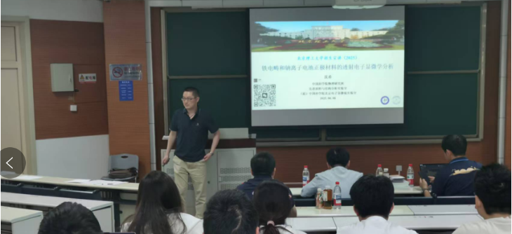 沈希研究员为同学们带来了题为:“铁电畴和钠离子电池正极材料的透射电子显微学分析”的精彩报告。介绍了使用透射电镜原位电学方法研究铁电畴和钠离子电池正极材料方面的工作。从前沿视角给同学们分享了样品-试验制备-表征过程中,如何找问题并解决问题的经验。作为北理工pg游戏电子模拟器的优秀校友,他还给同学们分享了他当年选择研究方向的亲身经历。
