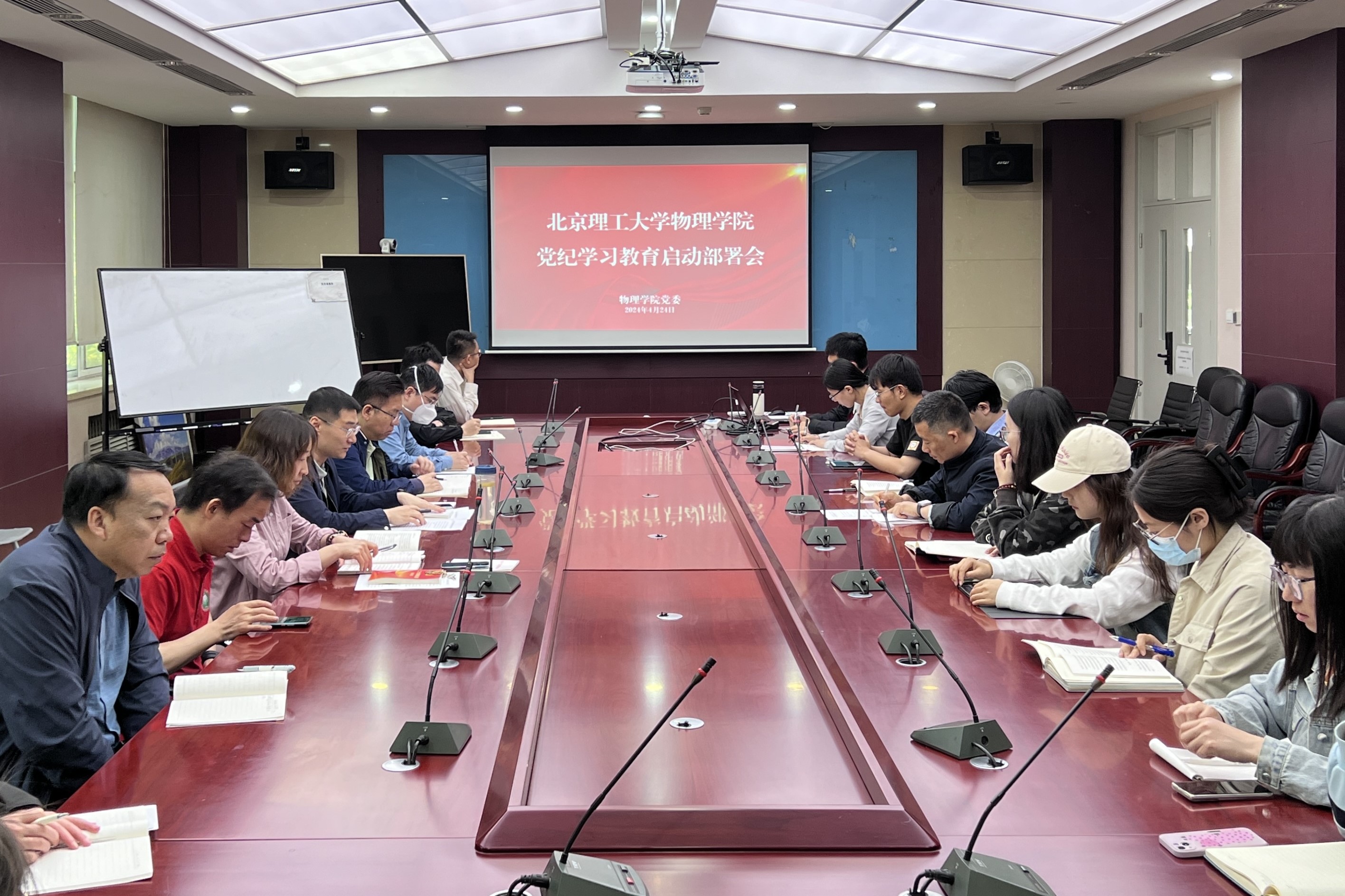 4月24日上午,pg游戏电子模拟器召开党纪学习教育启动部署会,学习贯彻习近平总书记关于党纪学习教育的重要讲话和重要指示精神,传达学校党委有关要求,研究部署学院党纪学习教育工作,动员全院党员干部认真落实,做到学纪、知纪、明纪、守纪。学院党委书记陈珂主持会议,学院党委委员、师生党支部书记参加会议。